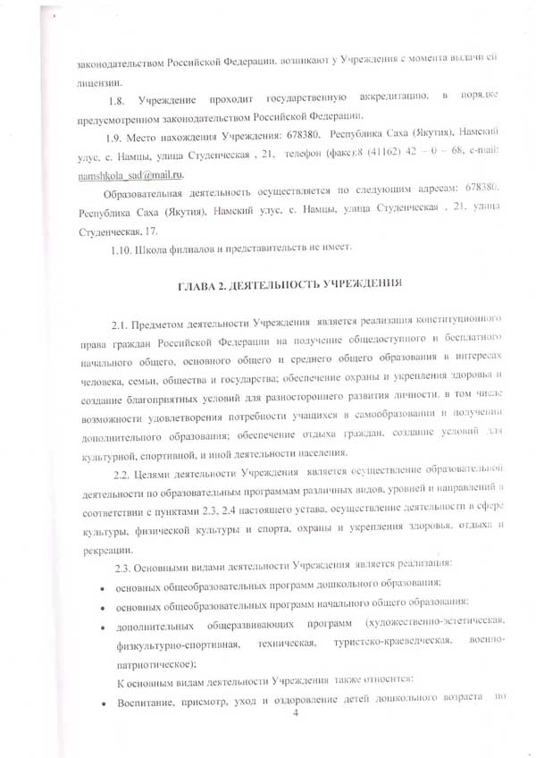 «Намская начальная школа – детский сад» муниципального образования «Намский улус»